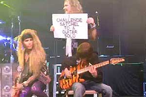 An 11-year-old has become the internet’s guitar hero after out-shredding the Steel Panther lead guitarist in an in-concert duel.