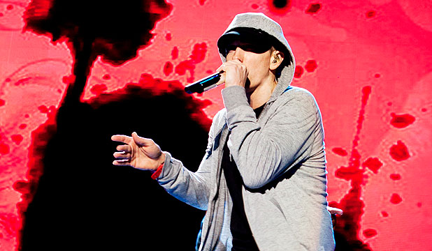 Marshall Mathers is captivating – sweat dripping from his brow, maniacally skipping around stage with eyes bulging and lips moving indecipherably.