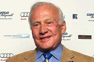 The 83-year old astronaut was the guest of honor at a party for a new camera from Hasselblad. The Swedish company supplied the camera used to take pictures of the lunar landing.