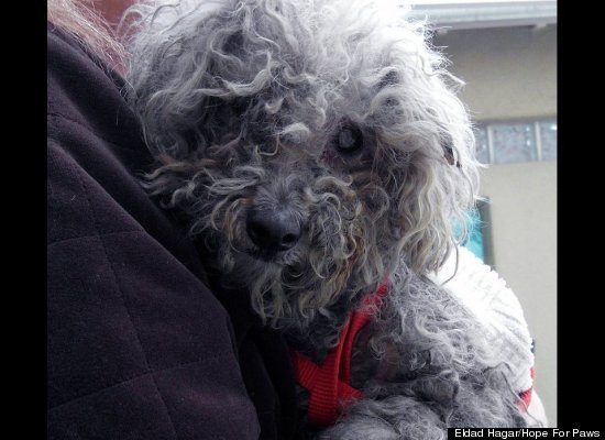 Eldad Hargar, 36, and his wife, Audrey, 37, who are the founders of Hope For Paws, a Los Angeles-based animal rescue organization that takes in abused and neglected animals, gathered the traumatized dog in their arms and immediately took her home. They shaved off her matted fur and cleaned off the dirt — thus beginning Fiona’s miraculous transformation.