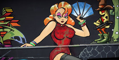A stroll down Nelson Street is a crash course in street-art styles. There’s the traditional graffiti work of Feek. There’s a huge, hyper-realistic rat by the Belgian artist ROA. A little further along, the artist SatOne’s abstract vision of four superheroes dominates an entire city block.
