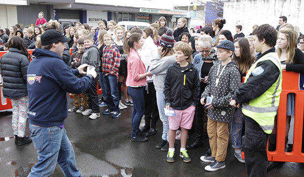 Crowds gathered outside The Stomach to catch a glimpse of him this afternoon.