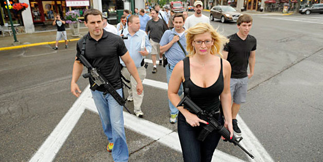 On April 13, high school student Sean M. Combs, walked through downtown Birmingham, Michigan, with an M-1 rifle strapped to his back. Apparently he thought he would be breaking no laws. He was arrested, though, and charged with brandishing a weapon, obstructing police, and disturbing the peace.