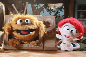 Fern is energetic, precocious and although she can get a little stroppy with him at times, she just adores her best friend Moe. Fern’s aesthetic was designed by Jeremy in collaboration with master puppet builder Pasha Romanowski. Once Fern arrived, fully formed, and we began to experiment with how she might move and interact with her surroundings, her voice came pretty naturally.