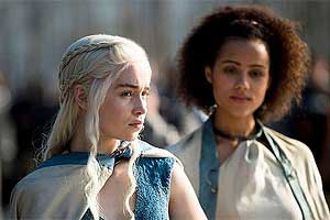Thanks to Game Of Thrones’ writer George RR Martin’s habit of dispatching beloved characters left, right and centre (Valar Morghulis and all that), the presence of Dany’s three rather large dragons has perhaps led to viewers pinning their hopes on the Khaleesi and the young woman who plays her. And, in a show that at times doesn’t differ that dramatically from its porn parody Game Of Bones when it comes to the bared bosom count, there’s something impressive about Dany’s now almost entirely sexless storyline (flirting with Daario and his blue roses doesn’t count).
