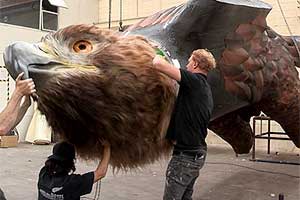 It shows the creation of two giant eagles that were unveiled at Wellington Airport earlier this month to mark the release of the second film in Sir Peter Jackson’s Hobbit trilogy.