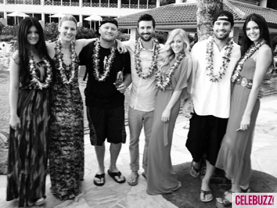 Kendall and Kylie Jenner are having fun in Hawaii with their step-brother Brandon Jenner’s wedding to Leah Felder .