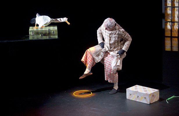 The play is performed by Wilson and Shona McNeil, using puppets crafted to replicate the book illustrations.