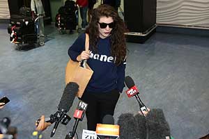Lorde and her family were met this morning by crowds of fans and members of the media, eager to catch a glimpse of the double Grammy winning star.