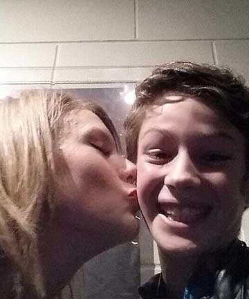 It’s a schoolboy dream – a big kiss on the cheek from one of the hottest females in the music business, Taylor Swift.