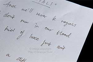 A handwritten copy of the lyrics of the New Zealand singer’s song is up for grabs in a charity auction.