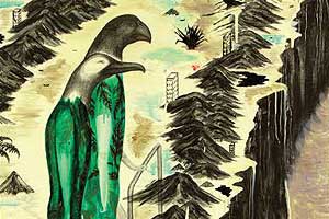Images of voyages, journeys and borders recur throughout Pacific Highways. On the cover, Bill Hammond’s birds look anxiously to sea, wondering what will arrive. The book is loosely organised as a migration from north to south, with Auckland Airport as a jumping off point and Antarctica as a kind of imaginative extension of New Zealand.