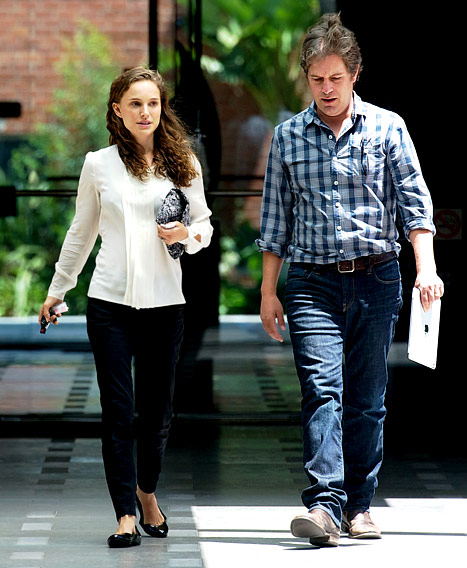 Natalie Portman is spotted talking with an aquaintance outside an office building in Los Angeles just a few days after her wedding to Benjamin Millepied on August 10, 2012.