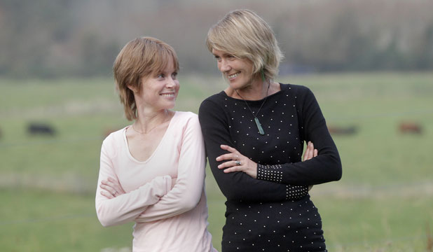 The real Louise Nicholas has met her actress double on a Kaitoke film set.