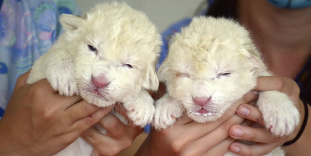 Pictures of white lion cubs born in Mexico Zoo