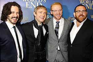 Director/screenwriter Edgar Wright, actor/screenwriter Simon Pegg and actor Nick Frost have been in Wellington for a whirlwind visit to attend the New Zealand premiere of the final instalment of their Three Flavours Cornetto trilogy.