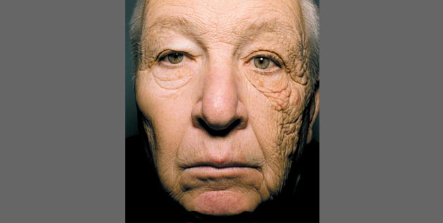 Here is a picture of a 69-year-old man who drove a truck for 29 years which means that the left side of his face had been exposed to sun and suffered considerably.