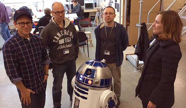 The picture showed Abrams, model builders Lee Towersey and Oliver Steeples and Lucasfilm boss Kathleen Kennedy standing with the refurbished R2-D2 model.