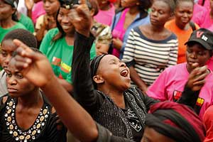 “If we are beating, raping, cutting, undermining, burning, selling women, we are destroying the basis of life itself,” she said. “And if one in three women is beaten or raped, that’s most of us. If it’s not happening to you, you know it can happen to you.”