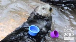 Adorable otter stacks cups like a champ